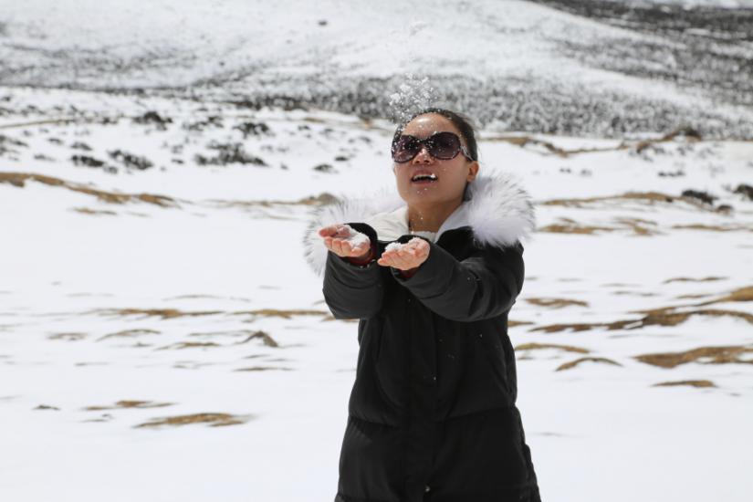 下午全體成員抵達(dá)巴松措、卡定溝景區(qū),在景區(qū)舉行了徒步活動,活動開始大家還能步調(diào)一致,不少員工在徒步活動開展的同時(shí)還進(jìn)行自我“活動”,有自拍的也有三五成群拍照的,似乎大家都想要把大自然饋贈的美景留住。伴隨著路程增加,高原氣候復(fù)雜多變,部分隊(duì)員體力不支的情況逐漸體現(xiàn)出來,發(fā)現(xiàn)有掉隊(duì)的隊(duì)員,大家就會上前攙扶、互相鼓勵、重振旗鼓再次踏上路途,最終全體人員一起到達(dá)終點(diǎn)。